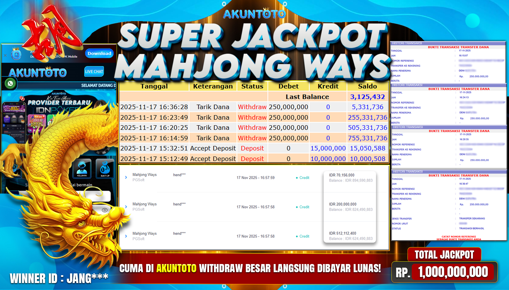 AKUNTOTO adalah platform situs toto yang sudah memiliki reputasi terbaik di kalangan pemain slot dan togel di tanah air. Hadirnya situs ini, tentunya akan memudahkan pemain untuk bermain taruhan secara online dengan mudah menggunakan server yang stabil dan akses login daftar yang anti blokir. Selain itu, AKUNTOTO juga sudah memiliki teknologi terkini dengan system keamanan terenkripsi SSL dan berlapis. Dengan modal bermain yang murah 10k, kalian sudah bisa menikmatin ribuan permainan toto slot gacor dan 50 pasaran toto togel favorit anda.